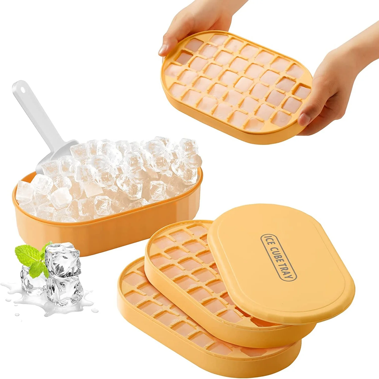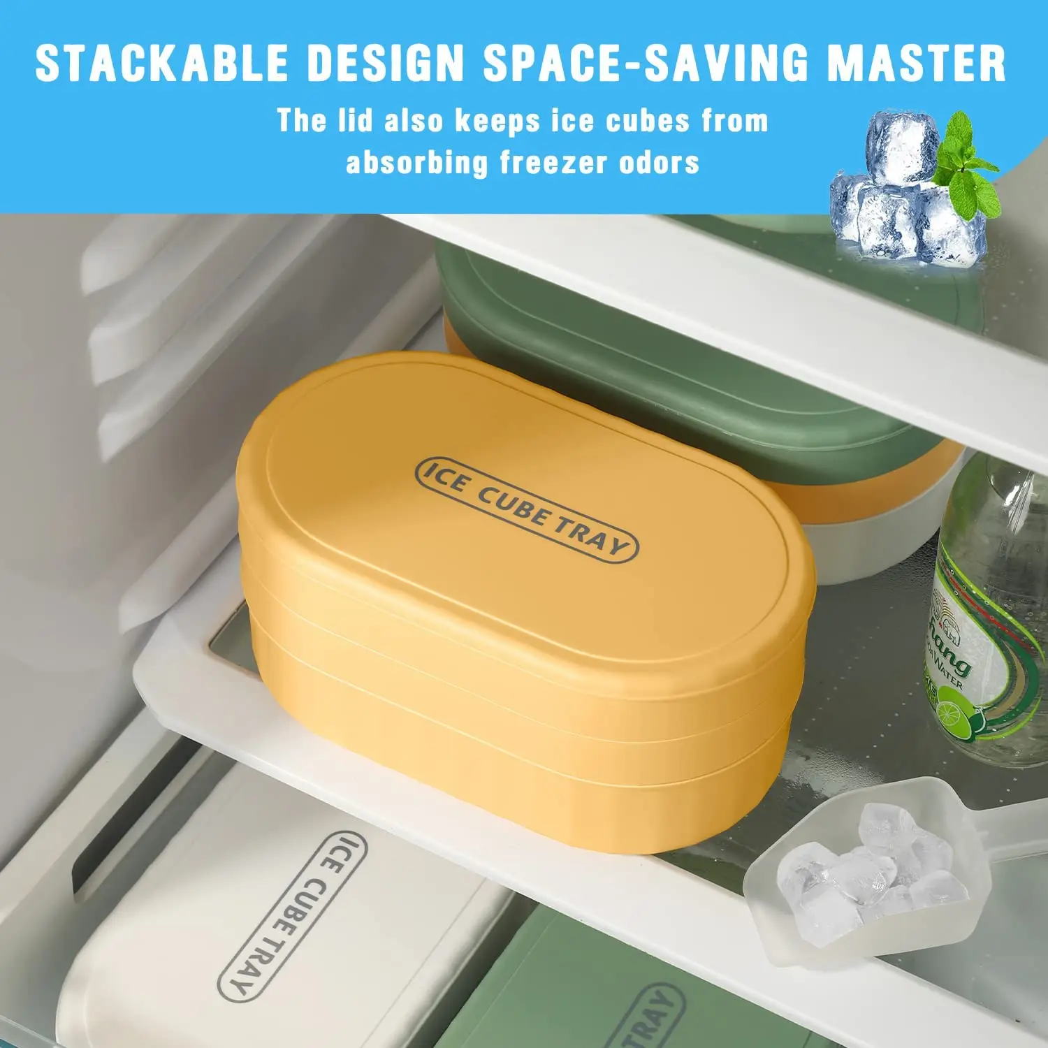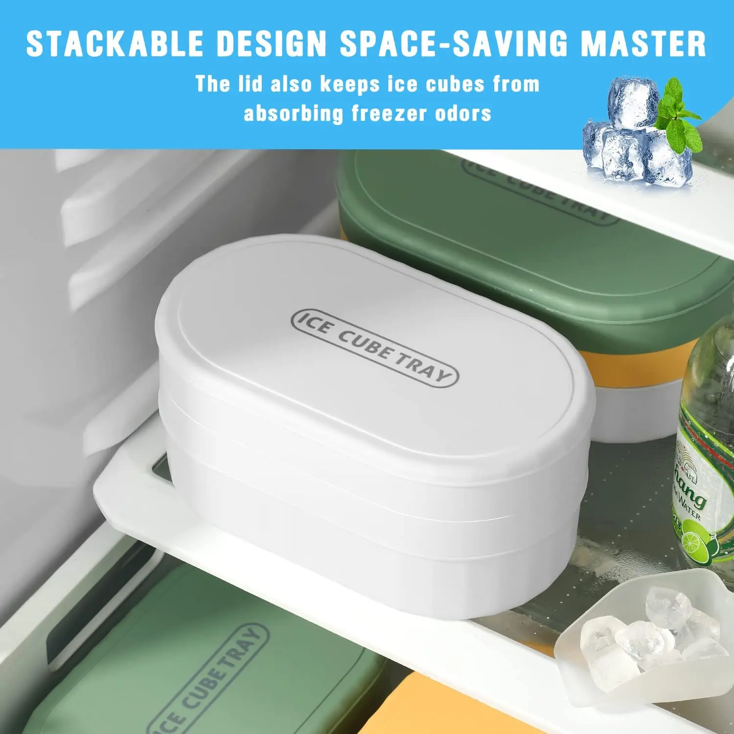 Bandeja para cubos de gelo de camada dupla com tampa e estojo - empilhável, faz