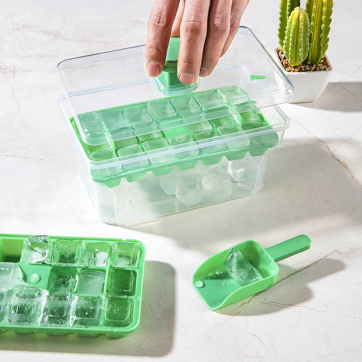 Bandejas de gelo para freezer com tampa e lixeira, bandeja de cubos de gelo que