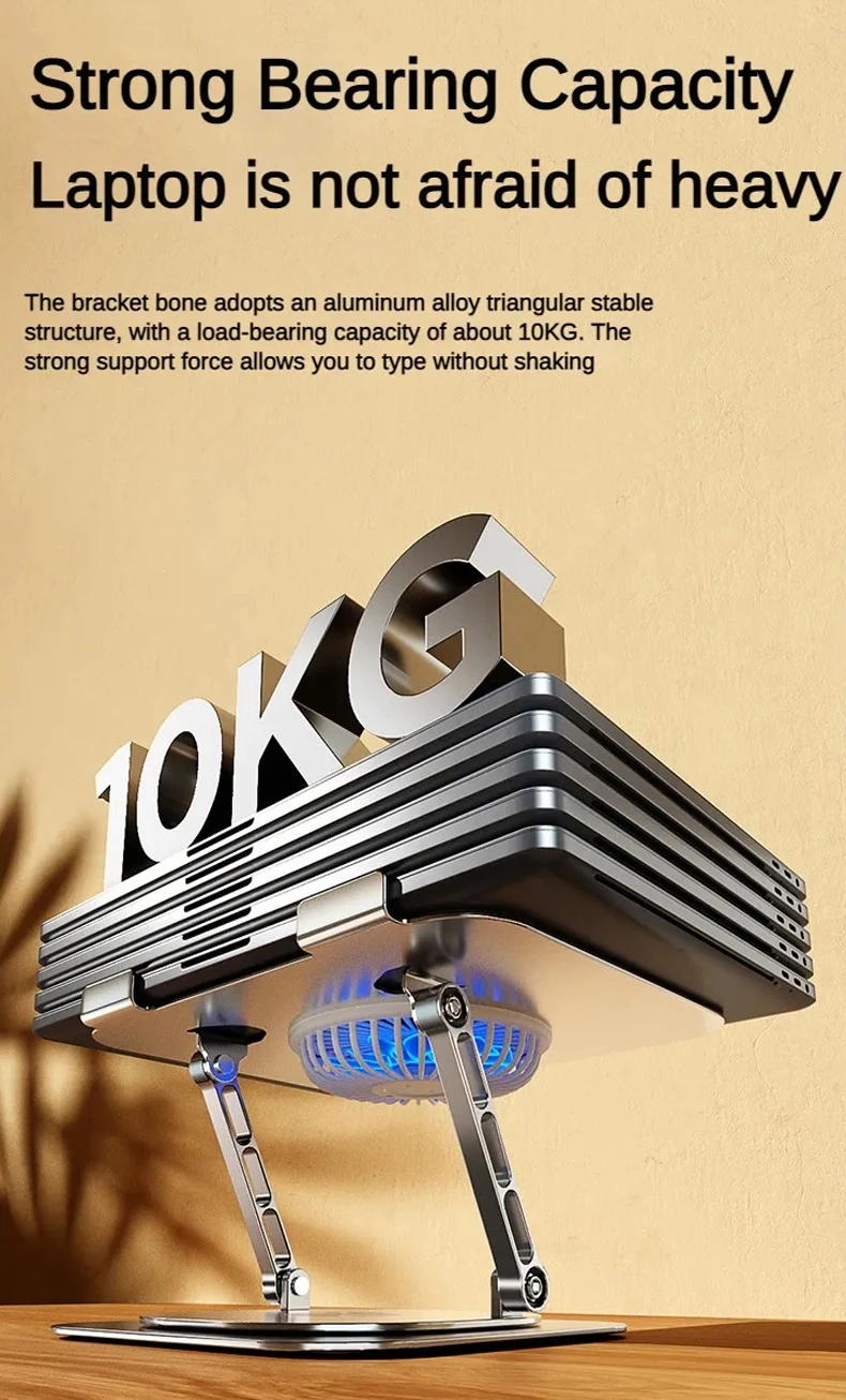 • Material de liga de alumínio:Fabricado em liga de alumínio de alta qualidade, este suporte oferece durabilidade e dissipação de calor superiores, garantindo que seu laptop permaneça fresco durante o uso.